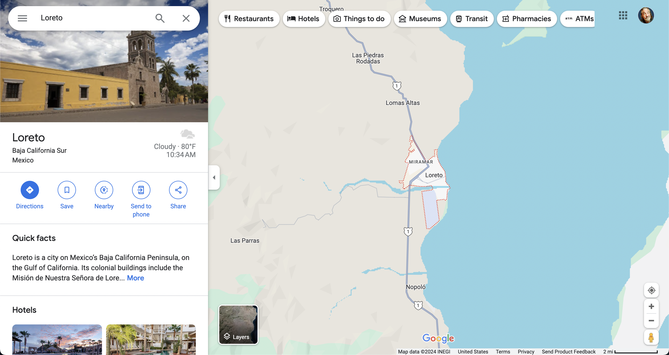 - There is a small, but very nice downtown area, filled with shops and restaurants. We ate at several and found all to be wonderful. Some notables are Claudias Margaritas Loreto (get the Mango/Jalapeño one), Posada De Las Flores Loreto (great rooftop), and Santo Cielo Cocina Gourmet (great music and food).