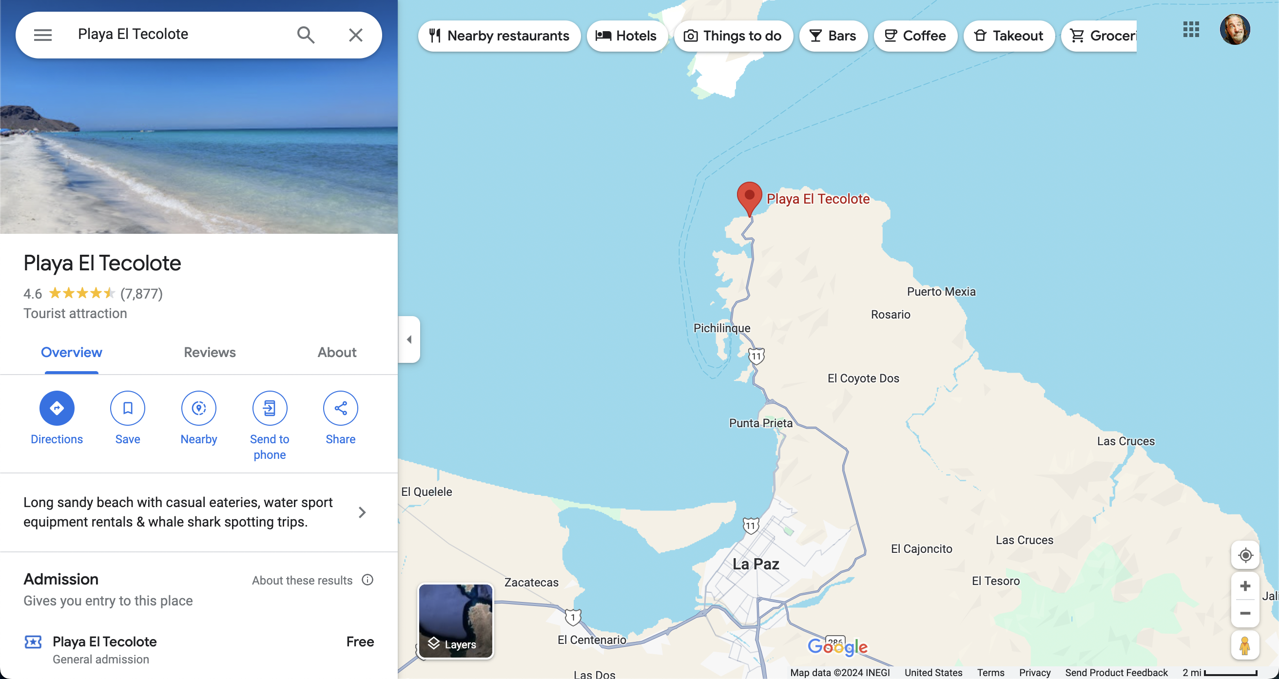 - It is extremely easy to get here. Just leave La Paz and follow the only real road north. It basically ends at Playa El Tecolote!